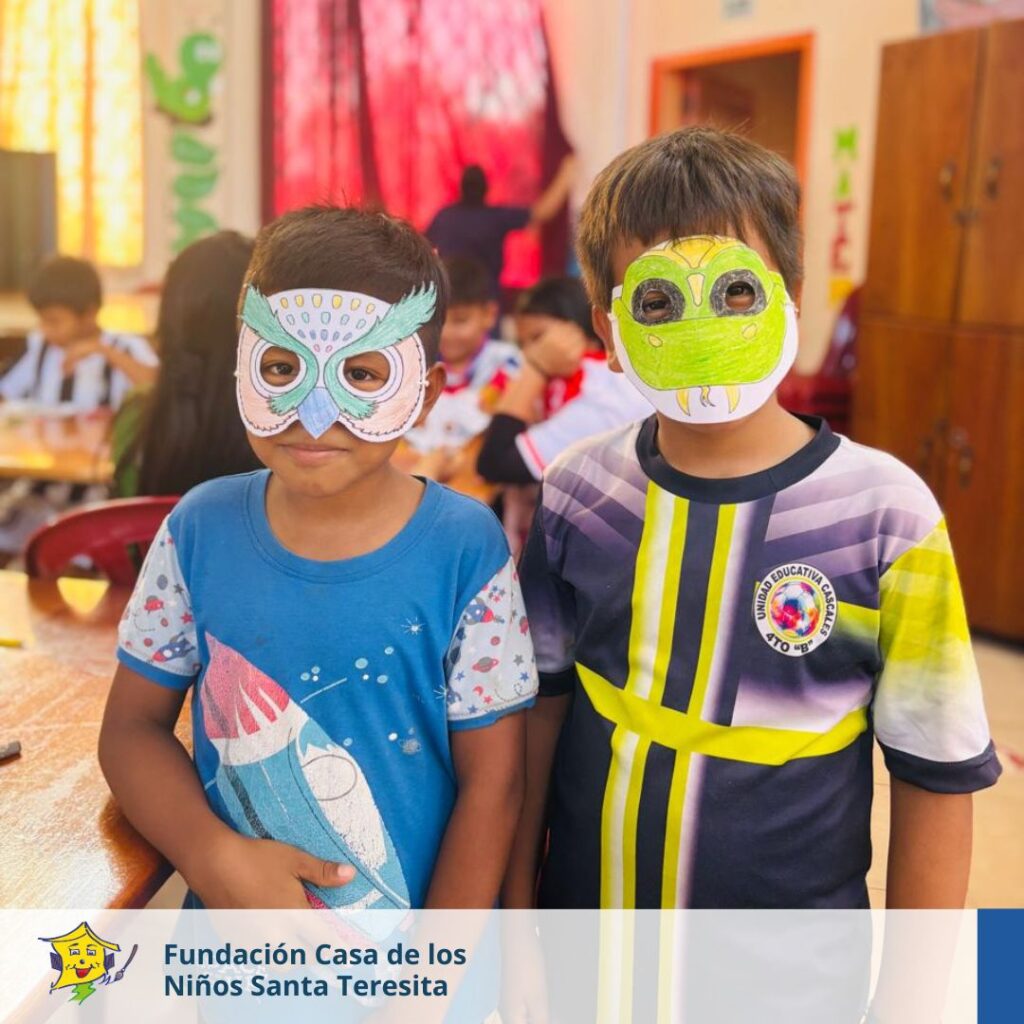 Además de las charlas, los niños participaron en una actividad artística. Cada participante pintó un antifaz con forma de animal.