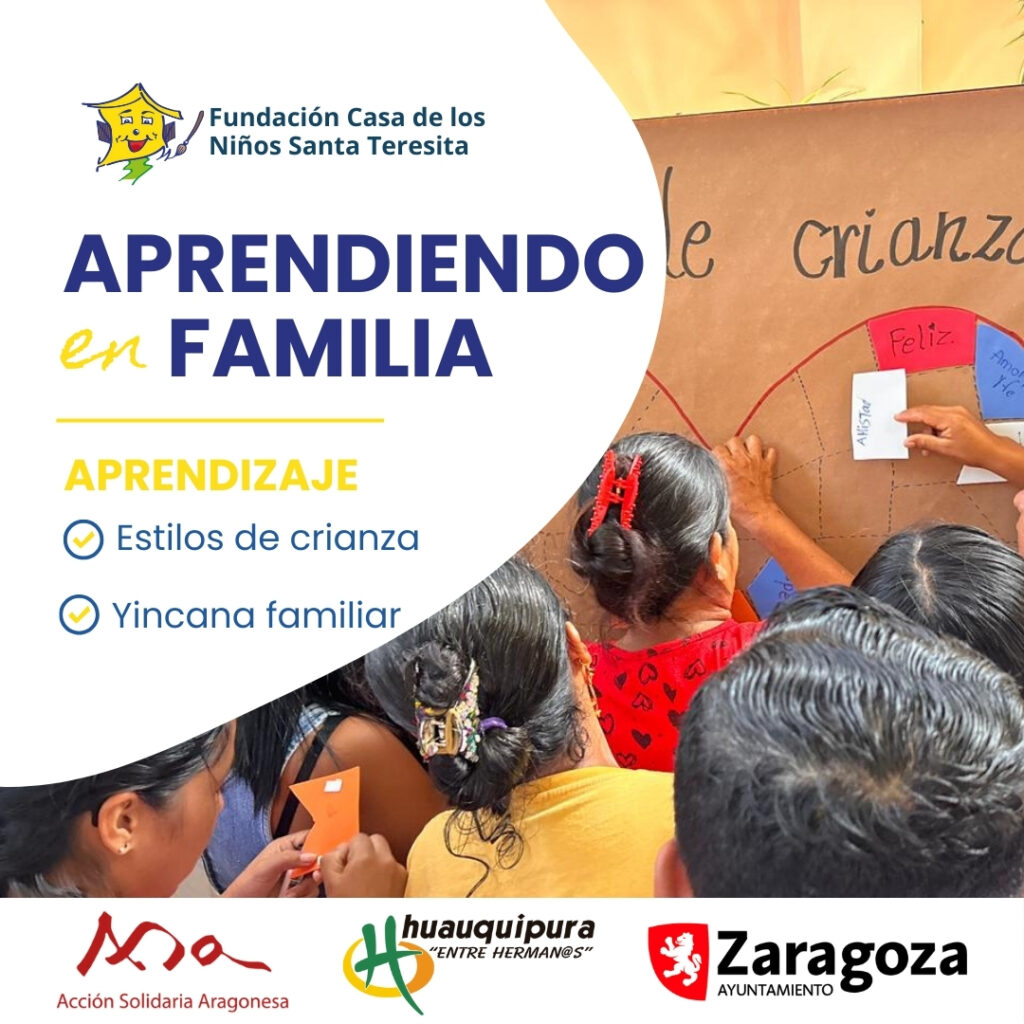 El Taller de padres y madres Aprendiendo en Familia contó con el acompañamiento de ASA (Acción Solidaria Aragonesa), Asociación Huauquipura y el Ayuntamiento de Zaragoza. Gracias a su apoyo, este proceso formativo continúa creciendo y llegando a más familias.